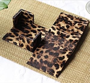★ヒョウ柄のデザインがワイルドでかっこいい、ケース入りコースター8枚入りです。