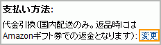 代金引換ではご購入いただけない商品ご注文商品が以下のいずれかに該当する場合、代金引換はご利用いただけません。これらの商品をご注文の場合は、クレジットカードでお支払いください。なお、「Amazon.co.jp が発送します」と表示されている商品についてはこちらをご覧ください。