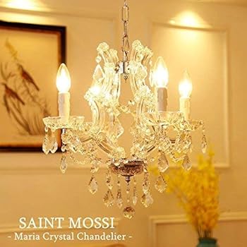 Saint Mossi シャンデリア クリスタル クリスタル 調 ガラス シャンデリアシーリングライト 4灯 E17口金 照明 照明器具 天井照明 アンティーク ガラス LED ダイニング用 食卓用 おしゃれ 可愛い 姫系 ゴージャス かわいい インテリア 電気 ライト シーリング 4畳