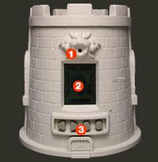 ![]() | (1)ドラゴンレリーフ クリティカルを出した時などに光る (2)液晶画面 塔の内部の様子を見ることができる (3)セレクト/キャンセルボタン/決定ボタン 各種操作を行うときに使用 |