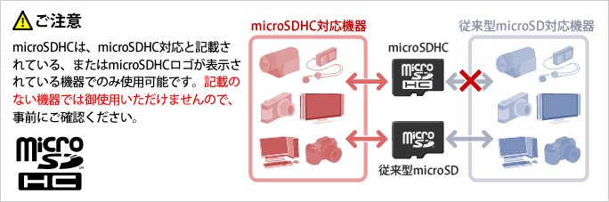 ※microSDHC対応の表記がある製品に限ります。また、あわせて対応最大容量をご確認下さい。