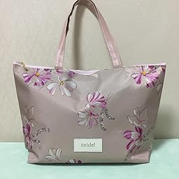 本体は薄いふじ色に、大きな紫色のフラワーの女性らしいデザインです。外側の片方に「snidel」のロゴが箔押しされたタグが縫い付けてあります。