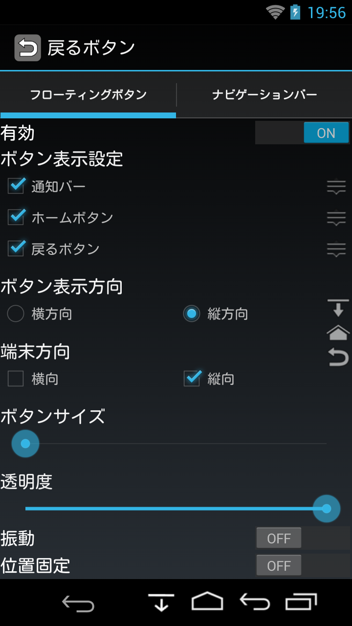 ホームボタンや通知バーの表示も出来ます。表示するボタンは選択が可能です。