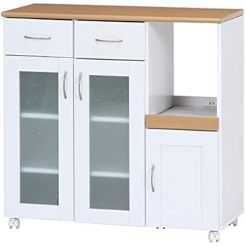 ぼん家具 キッチンカウンター 収納 キャスター付 約90cm幅 レンジ台 木目 木製 ホワイト