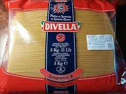 スパゲッティより1段階細いパスタ「スパゲッティーニ」です。日本ではスパゲッティと混同されている所も多く、女性が細いのを好むせいなのか、市中で見掛けるディヴェッラ製品は殆どNo.8 スパゲッティではなくこっちの方ですね。