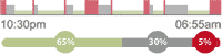 人は深い睡眠時には身体はほとんど動きがなく、眠りが浅くなるにつれて身体の動きが増えるという原理があります。スリープトラッカーは、睡眠中の細かい身体の動きをモニターする「アクセロメーター」を内蔵し、睡眠サイクルを計測する機能を搭載しています。アラーム時間をセットすれば、設定時刻の10分~90分前(時間の選択は可能)からモニターが作動し始め、あなたの睡眠サイクルに応じて快適に起きられる瞬間をキャッチしてくれます。