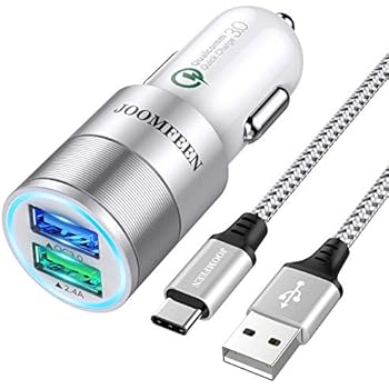 【QC3.0+2.4A】JOOMFEEN カーチャージャー 車載充電器 2ポート usbカーチャージャー シガーソケットチャージャー type cケーブル付 Sony Xperia XZ/XZ2,Samsung Galaxy S9/S8などのType-C端子搭載のスマホに対応