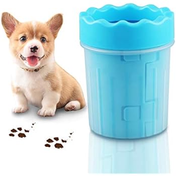 FYLINA 犬 足洗いカップ ペット 足 クリーナー 半自動式 使いやすい 省力 省時間 抗菌シリコーン製 安全安心 二股ブラシヘッド 洗浄力抜群 柔軟 マッサージ効果 水切り可能 携帯便利 小型 犬 最適 ブルー